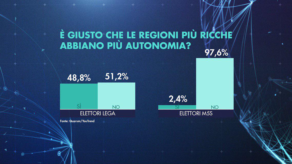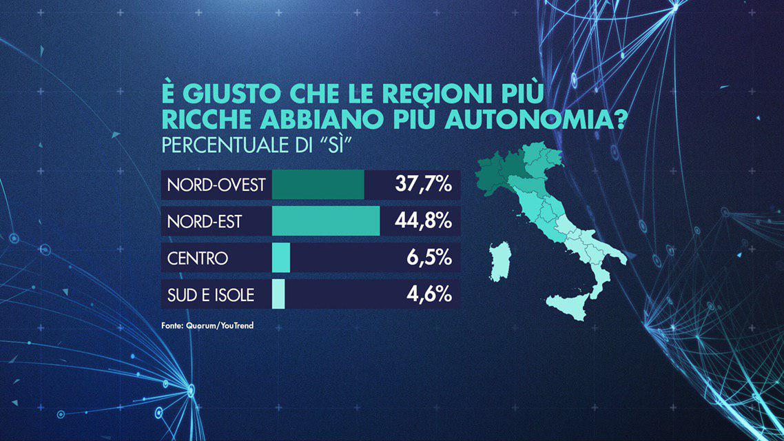 Sondaggio Quorum/Youtrend: la mappa del consenso per l’autonomia