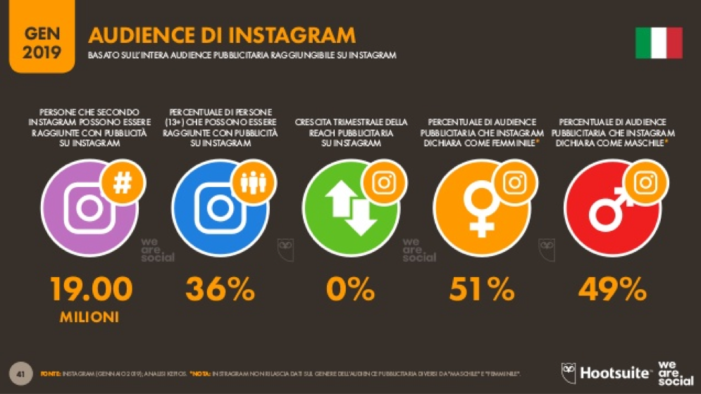 19 milioni di persone sono invece attive, mensilmente, su Instagram (+36%). Il social delle foto piace di più alle donne, che rappresentano il 51% degli utilizzatori, mentre la fascia d’età più comune è quella tra i 19 e i 20 anni (20,6%).