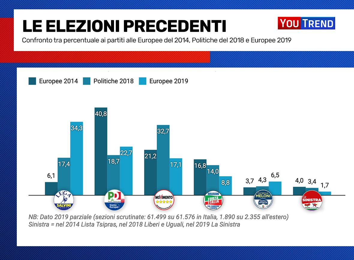 02.51 – Il Partito Democratico è il secondo partito alle Europee 2019 in Italia, recuperando terreno rispetto alle Politiche 2018.