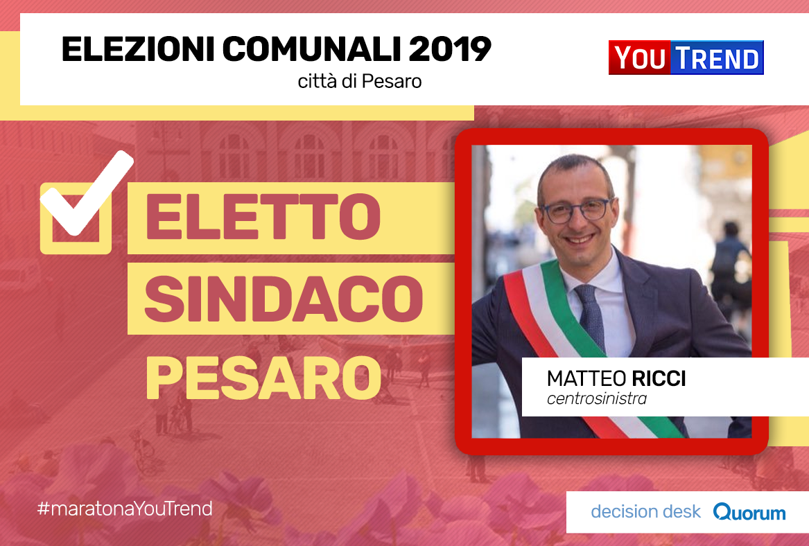 17.25 – A Pesaro, l’incumbent Matteo Ricci vince al primo turno e si assicura un altro mandato.