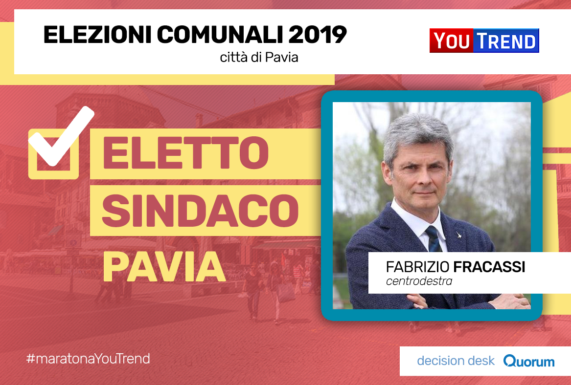 16.48 – A Pavia Fabrizio Fracassi (centrodestra), ottiene la vittoria al primo turno contro la sfidante Ilaria Cristiani (Centrosinistra), divenendo il nuovo Sindaco.