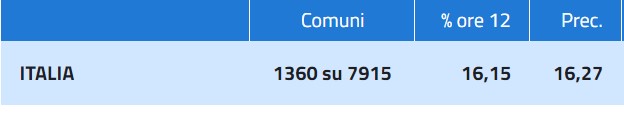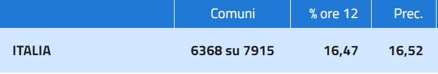 12.10 – Giungono i primi dati ufficiali anche dal Ministero dell’Interno, riferiti a 1360 comuni su 7915. L’affluenza è al 16,15% in calo di appena lo 0,12 rispetto al 2014.