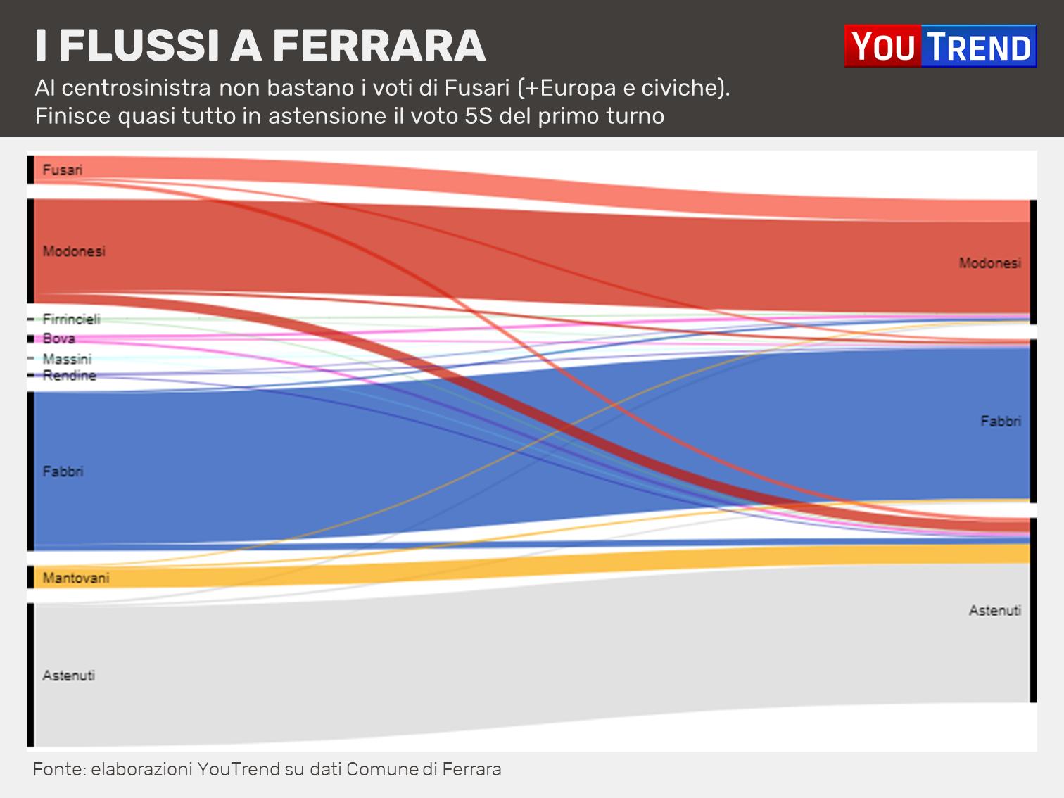 A Ferrara, come abbiamo già avuto modo di dire nel nostro articolo di approfondimento, vince Alan Fabbri del centrodestra col 56,8%: si tratta del primo Sindaco non di centrosinistra della città estense. L’ex candidato alla Presidenza della Regione Emilia-Romagna nel 2014, che il 26 maggio aveva raccolto il 48,4% dei voti validi, è infatti riuscito ad affermarsi sul candidato del centrosinistra Aldo Modonesi, che al primo turno si era fermato al 31,8% e al ballottaggio ha raccolto il 43,2%. Ferrara, in effetti, era una della sfide più attese di questa tornata.