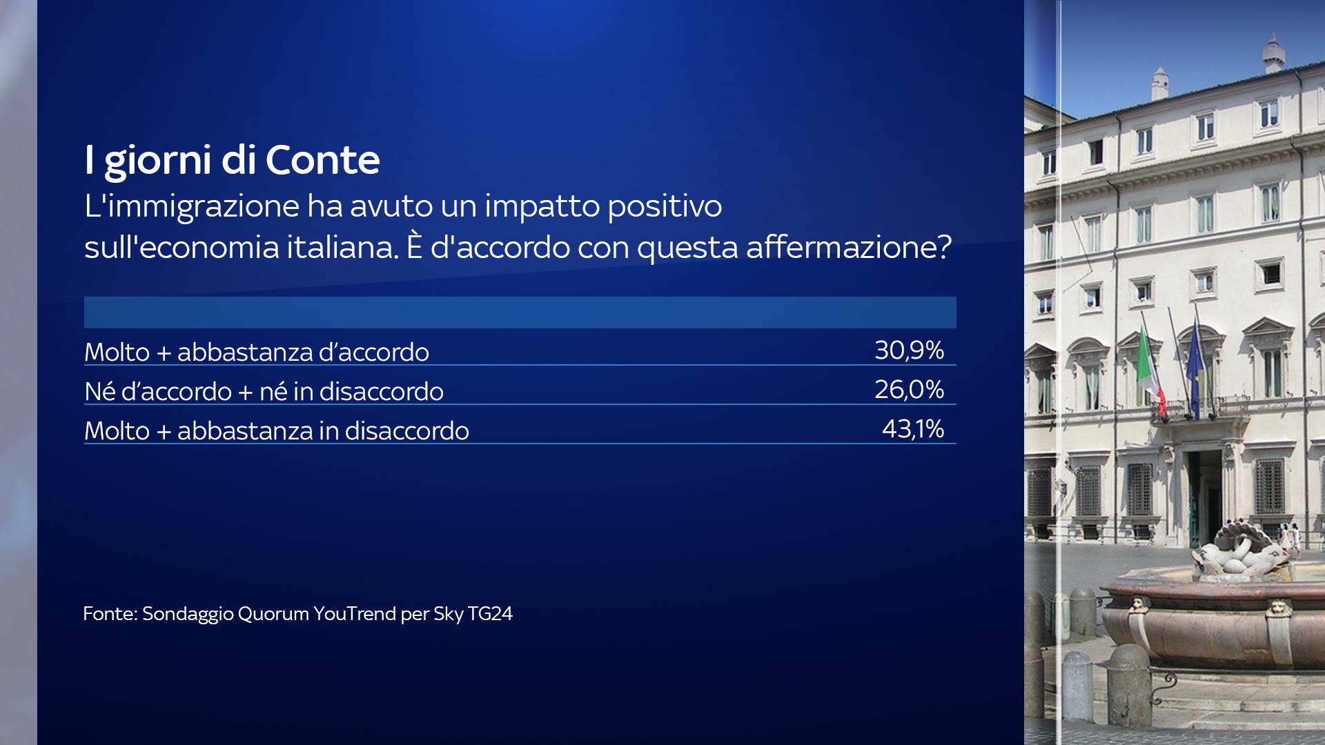 Sull’immigrazione, invece, il 30,9% degli italiani concorda con il fatto che questa impatti positivamente sull’economia del Paese, idea invece contestata dalla maggioranza del 43,1%.