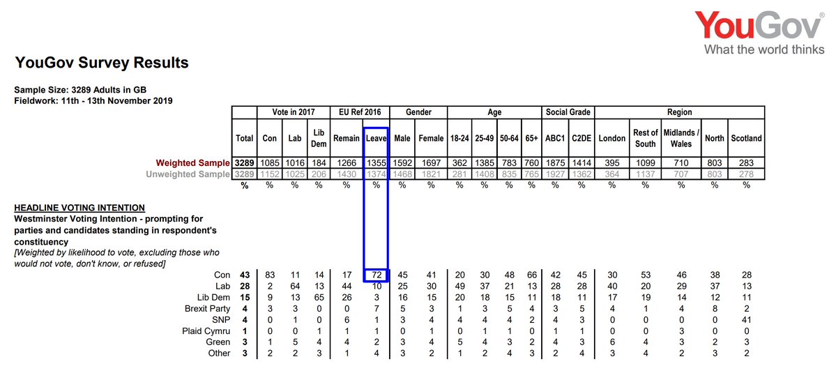 Da una parte, la strategia di Boris Johnson è molto chiara: fare il pieno dei “Leavers”, prosciugando il Brexit Party di Farage ma pescando anche tra i laburisti che hanno votato Leave. I sondaggi mostrano che per il momento quest’operazione sembra riuscita: circa il 70% degli elettori che nel 2016 avevano votato Leave oggi voterebbe per i Conservatives. Lo slogan “Get Brexit done” di Boris, ripetuto come un mantra, sembra aver funzionato.