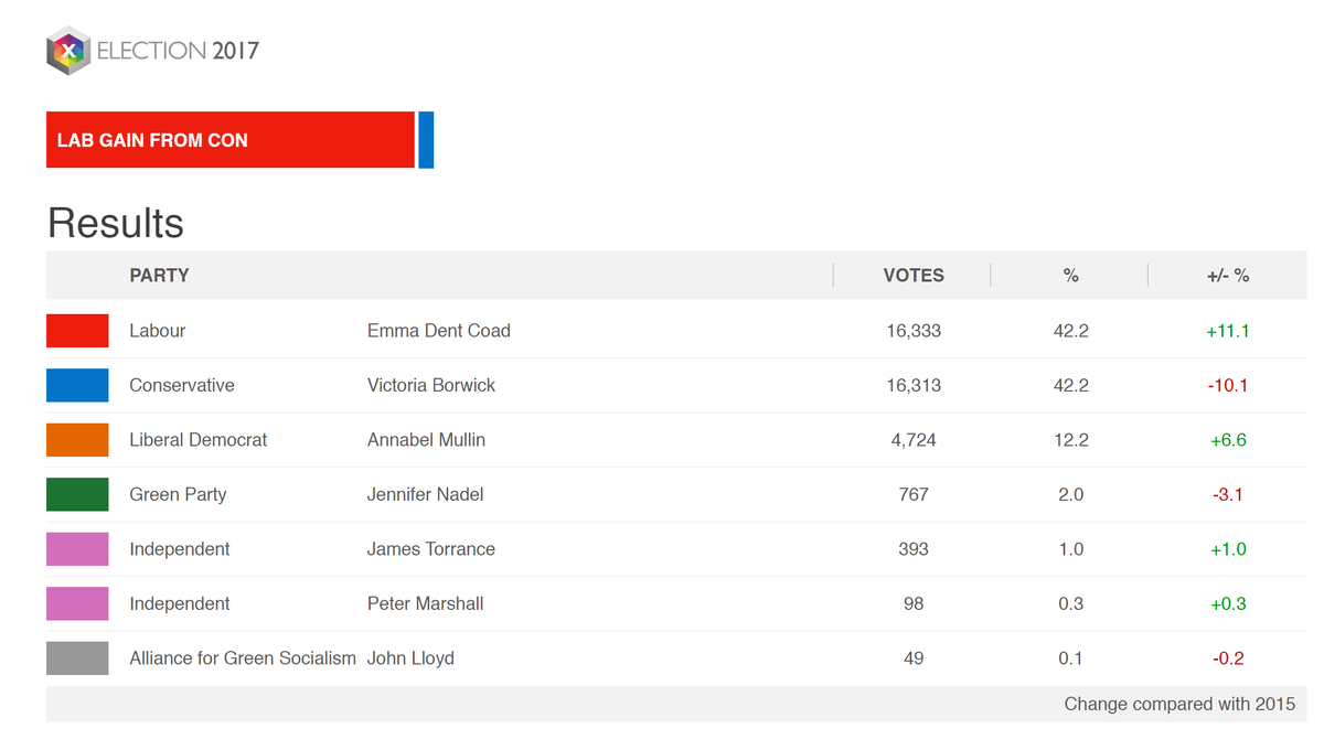 Sta di fatto che, per ciascuno dei 650 collegi, il candidato che ottiene anche solo un voto in più degli altri in quel collegio viene eletto e va alla House of Commons. A volte bastano davvero pochi voti per ribaltare un risultato: per esempio, questa è Kensington nel 2017: il Labour vinse di 20 (VENTI) voti.