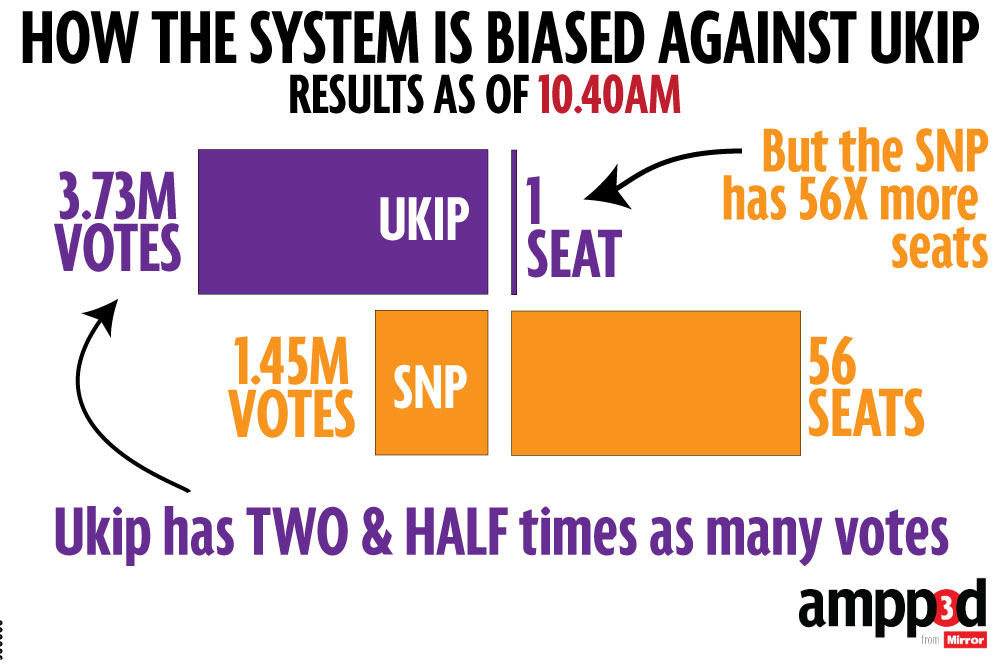 La prima: favorisce i partiti che hanno una certa distribuzione geografica del voto più concentrata (ad esempio lo Scottish National Party). Al contrario, danneggia i partiti medi che non hanno grande concentrazione locale (per esempio i LibDem, o lo UKIP in passato).
