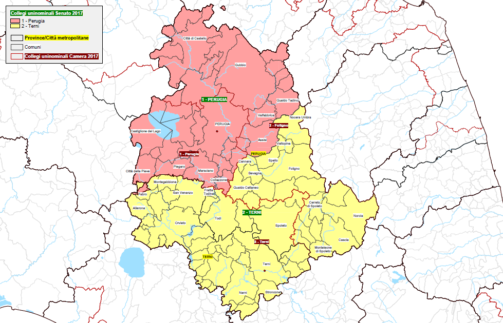 Il territorio di questo collegio uninominale comprende tutta la Provincia di Terni più 27 comuni della Provincia di Perugia. Sono quindi chiamati alle urne – per limitarsi a citare i sei comuni più popolosi del collegio – i cittadini di Terni, Foligno, Spoleto, Orvieto, Narni e Todi.