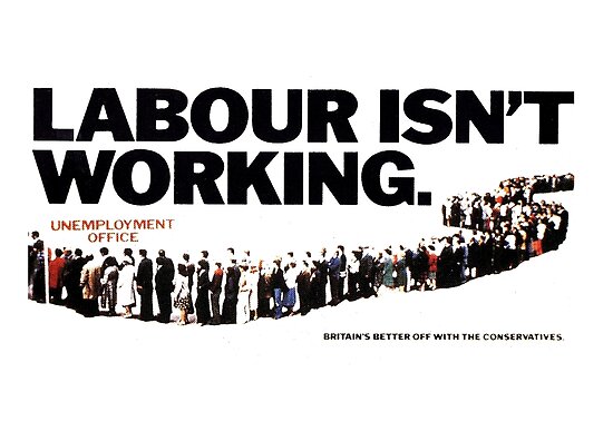 Tra le intuizioni dei fratelli Saatchi in questa storica campagna del 1979, in ogni caso, non si può non menzionare lo slogan studiato per cercare di screditare il Labour e in particolare le sue politiche per il lavoro: con un raffinato gioco di parole, infatti, Maurice e Charles Saatchi produssero un manifesto da diffondere in tutto il Paese recante la scritta «Labour isn’t working», ovvero «I laburisti non stanno funzionando» o anche «I laburisti non stanno lavorando». Sotto questa scritta a caratteri cubitali era riportata l’immagine di una fila interminabile di disoccupati: il Paese, come accennato, stava affrontando uno dei suoi momenti più difficili dal punto di vista occupazionale, e la scelta dei conservatori di puntare sullo screditamento delle politiche del governo uscente – piuttosto che sull’effettiva promozione delle proprie idee – si rivelò alquanto efficace (a livello di dimensione, la scritta «Britain’s better off with the Conservatives» occupa uno spazio molto più ridotto nel manifesto).