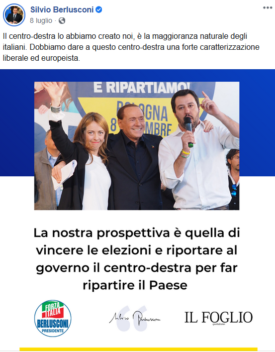 Se tutti i leader parlano di tematiche economiche, far riferimento alle istituzioni e al governo si conferma (come immaginabile) una prerogativa dei leader dell’opposizione. In particolare, è Silvio Berlusconi a guidare la classifica sia con contenuti riferiti alla coalizione di centrodestra nel suo insieme, sia con post più personali, legati direttamente al suo lavoro al Parlamento Europeo.