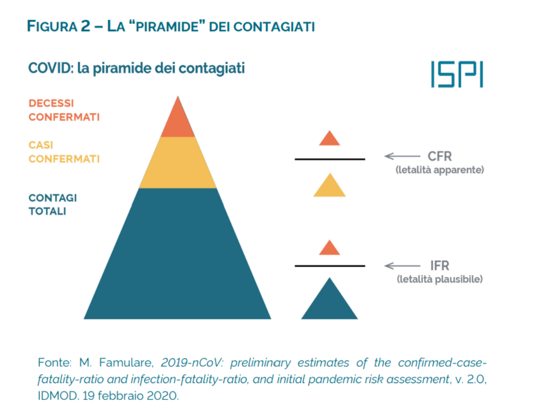 • Lo studio ISPI già citato ha stimato al 27 marzo 2020 un tasso di letalità plausibile o IFR grezzo di 1.14% (95% CI: 0.51% – 1.78%).