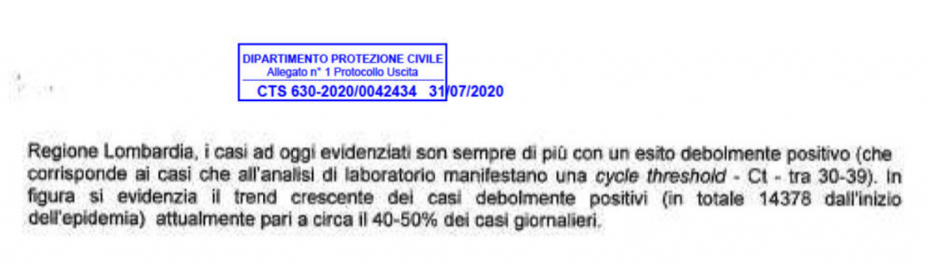 Solamente la Regione Lombardia nei bollettini quotidiani indica il numero di debolmente positivi, sebbene il numero di Ct utilizzato per definire un debolmente positivo non sia pubblicamente noto.