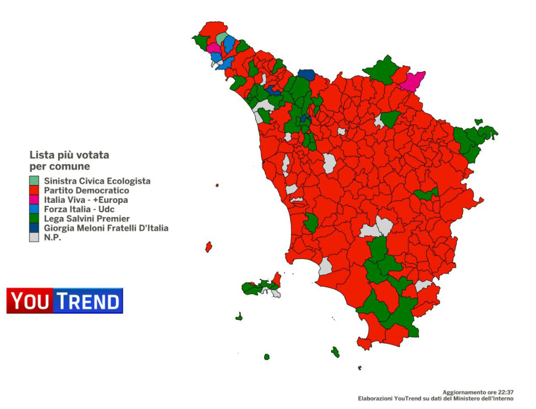 - Toscana, lista più votata per comune (spoglio al 62,6%)