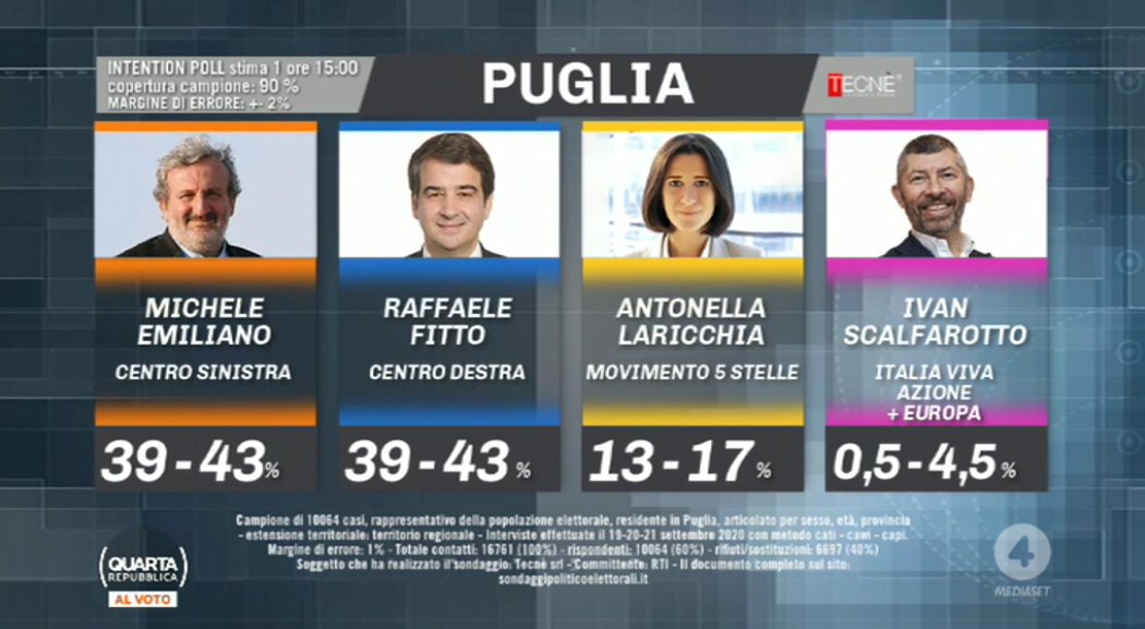 La Valle D’Aosta rimane la prima regione per affluenza alle regionali. Sopra la soglia del 30% Toscana, Veneto, Marche e Liguria, mentre la Puglia si ferma al 27,6% e la Campania al 26,5%.