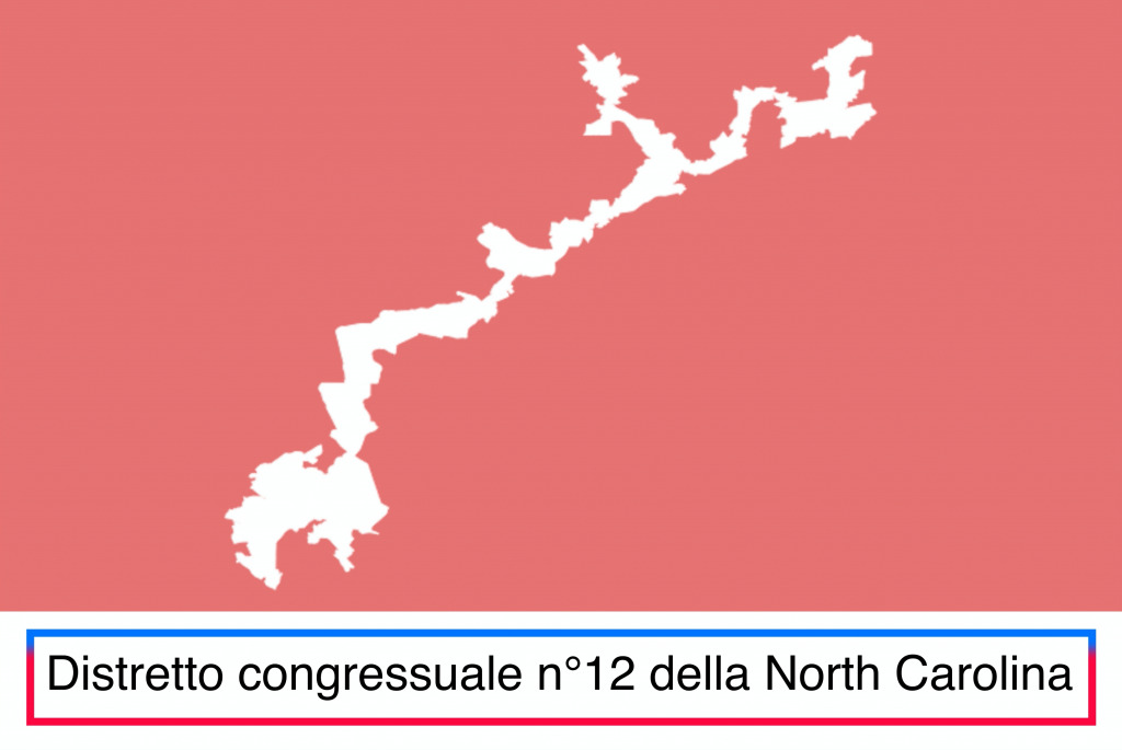 Il dodicesimo distretto della North Carolina è, secondo il Washington Post, il distretto più “gerrymandered” d’America. Oggi la maggioranza relativa degli elettori è bianca (41%), e i democratici sono stati in grado di vincere qualsiasi tornata elettorale dal dopoguerra a oggi, grazie anche alla presenza di alcune zone liberal di Charlotte. Nel 2016 la Corte Suprema degli Stati Uniti ha ordinato allo Stato di ridisegnarne i confini poiché quelli precedenti erano incostituzionali.
