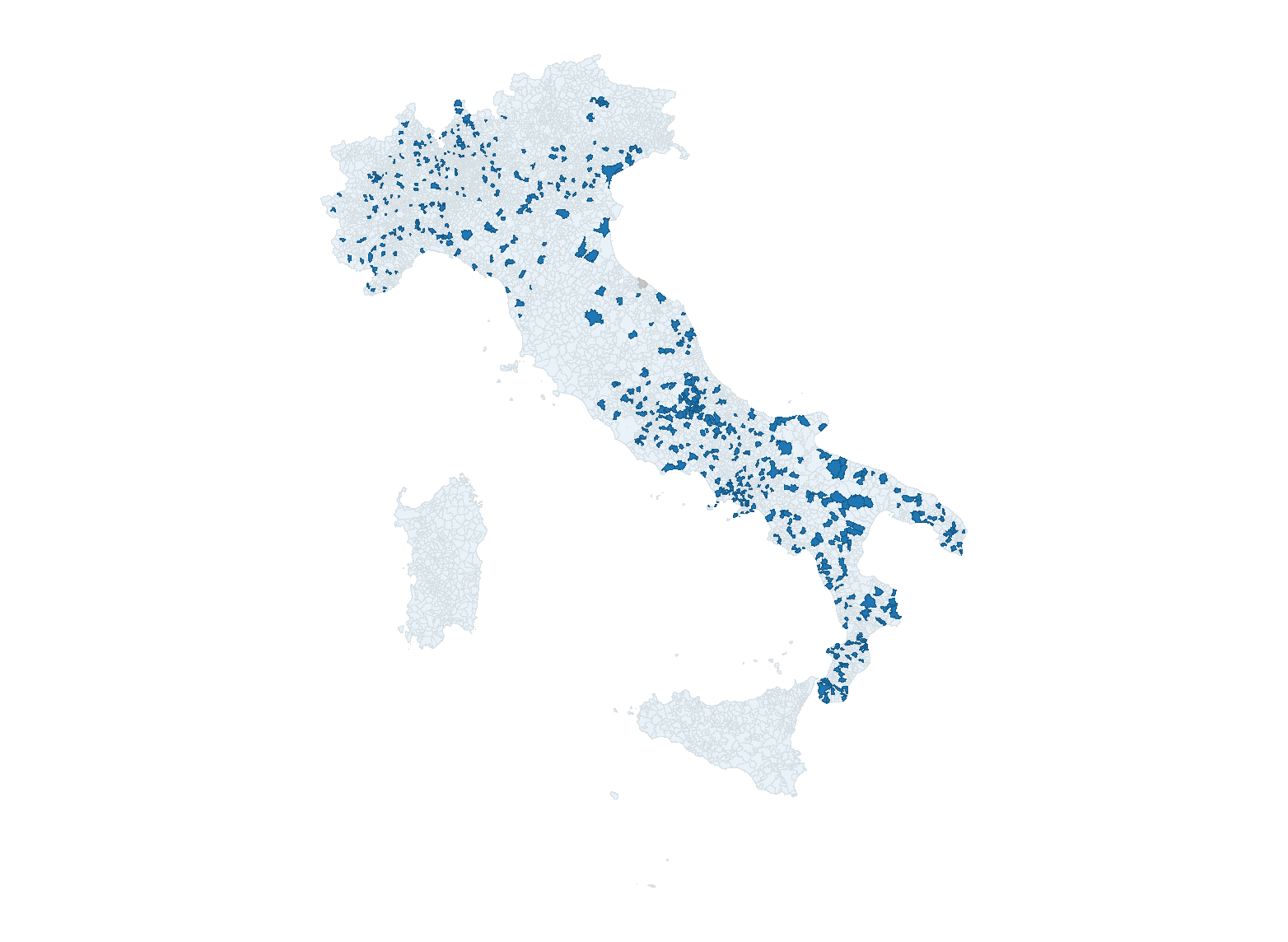 Per studiare l’effetto delle comunali abbiamo individuato la lista dei comuni in cui si sono svolte tali elezioni all’interno delle regioni a statuto ordinario. La figura 1 evidenzia questi territori.