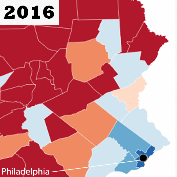 Come è cambiato il voto nell’area attorno a Philadelphia