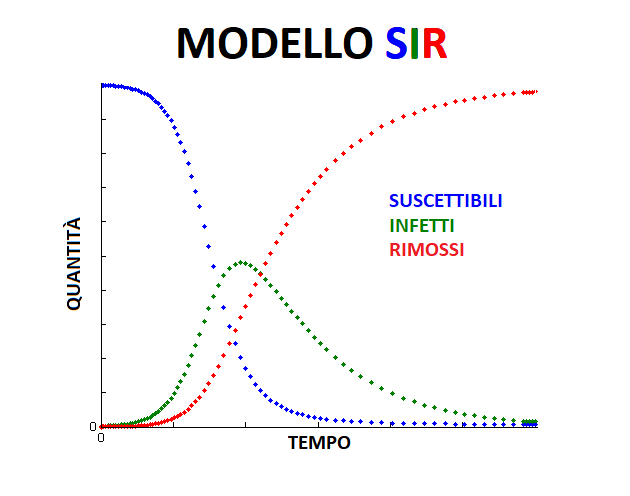 Per discuterne ci serviremo del modello SIR semplice: utile per descrivere la diffusione di un’epidemia, esso è basato sulla suddivisione della popolazione in tre gruppi: Suscettibili (cioè contagiabili), Infetti e Rimossi (questi ultimi possono essere guariti o deceduti).