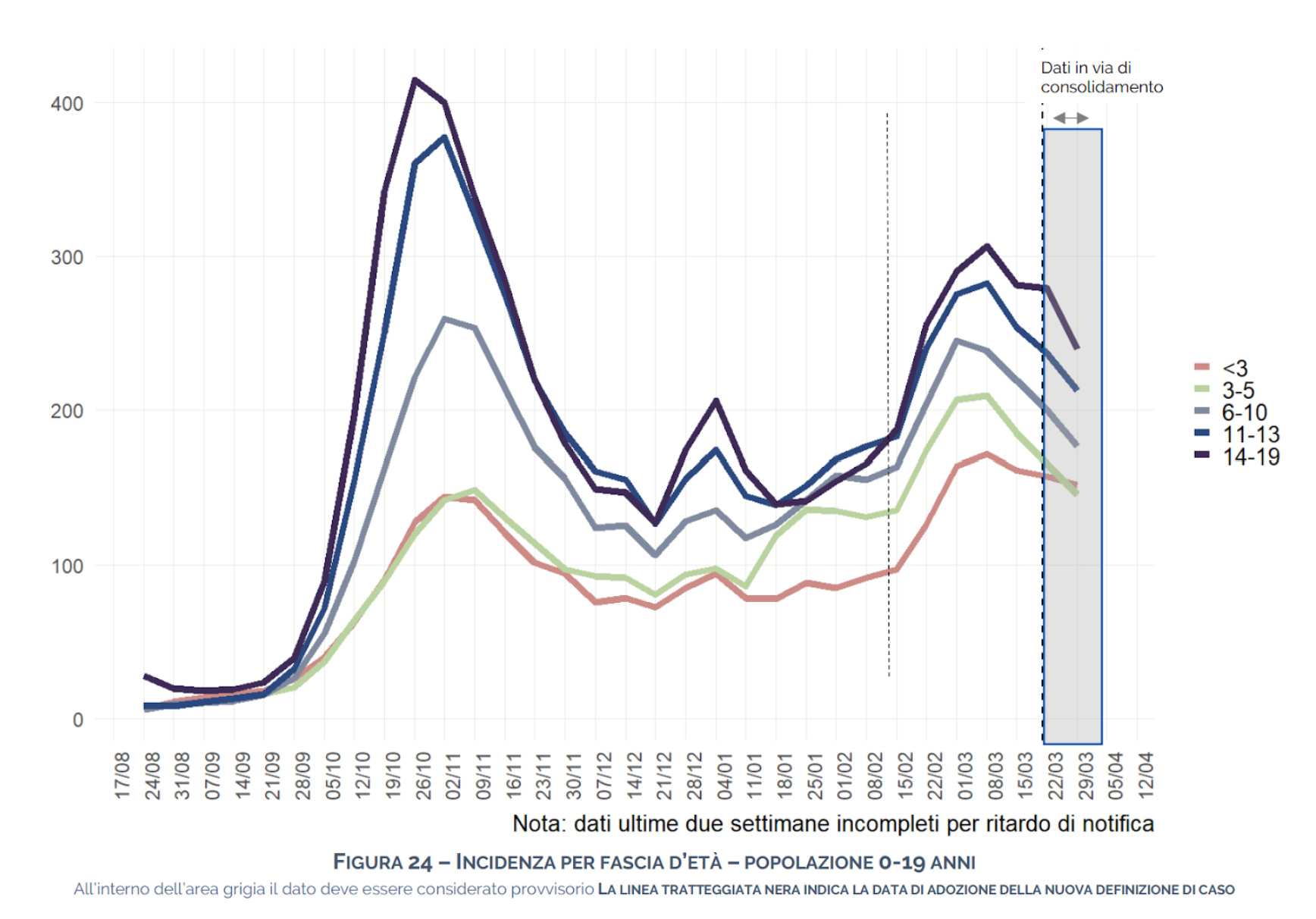 Vista la dinamica sociale del virus, prescindendo per un attimo da aspetti biologici, è naturale aspettarsi una maggior prevalenza nei più giovani: come spiegano i modelli su rete, per motivi strettamente sociali i giovani e i bambini tendono ad avere un grado più elevato rispetto, ad esempio, a quelle fasce d’età che sembravano più colpite dal virus. Con grado, seguendo la terminologia della Teoria dei Grafi, intendiamo il numero di nodi collegati a esso.