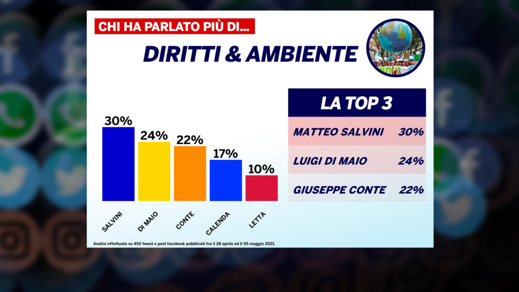 Giuseppe Conte, Luigi Di Maio ed Enrico Letta hanno commentato molto l’episodio, ottenendo con questi contenuti anche numerose interazioni. Il centrodestra, invece, ha affrontato il caso in modo diverso, allargando l’area del dibattito tramite l’inserimento di episodi che potessero essere più utili alla propria causa. Matteo Salvini, ad esempio, è il leader che ha parlato di più di diritti, facendo riferimento soprattutto alla polemica su Pio & Amedeo e a quella sul bacio del Principe Azzurro.