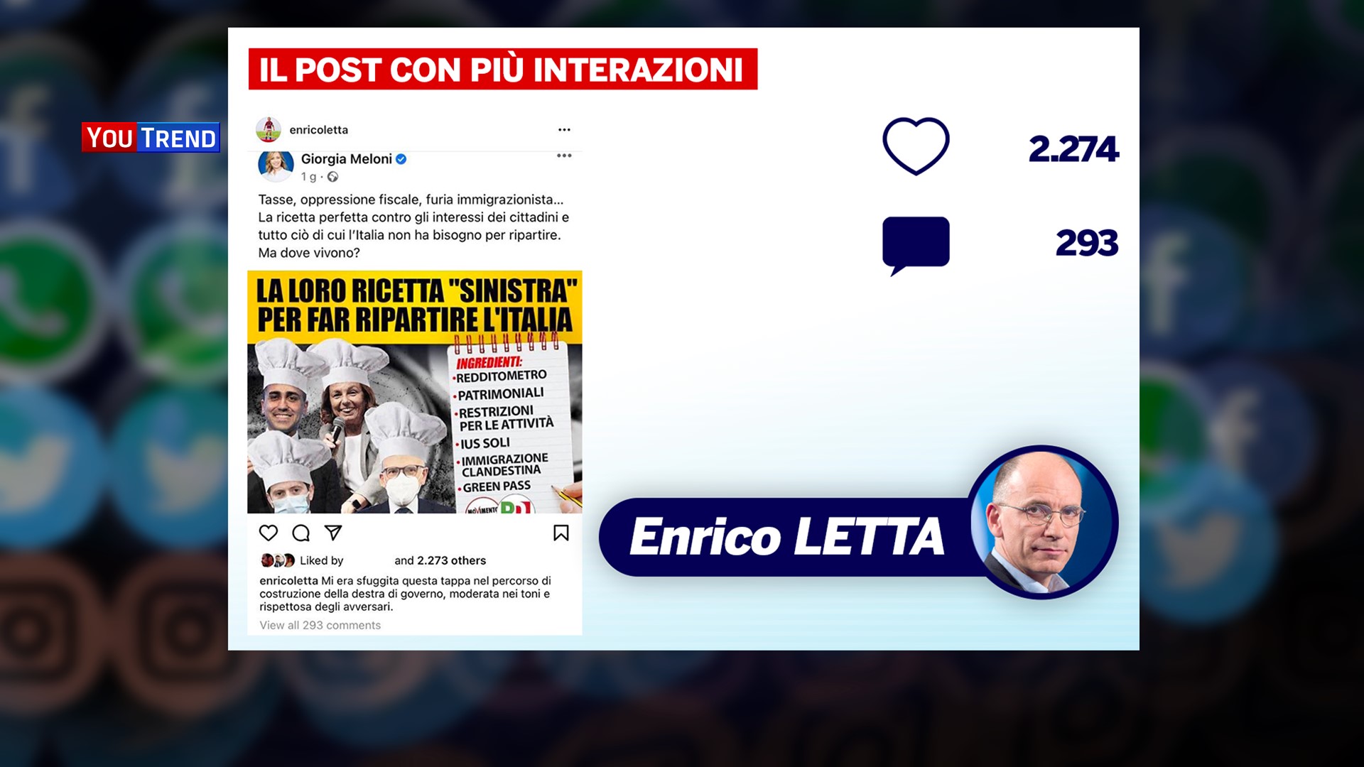 Siamo ormai abituati a una costante dialettica che i leader della Lega e di Fratelli d’Italia utilizzano verso Enrico Letta, soprattutto su questi temi (e sulla tassa di successione). Una novità, però, è la risposta del Segretario del PD, che negli ultimi giorni ha risposto ricondividendo un meme pubblicato da Giorgia Meloni. Una scelta forte e a doppio taglio: se da un lato, infatti, l’intento è stato chiaramente quello di ribaltare gli attacchi ricevuti, il rischio è di aver rafforzato, anche tra i propri fan, i frame dell’avversario.