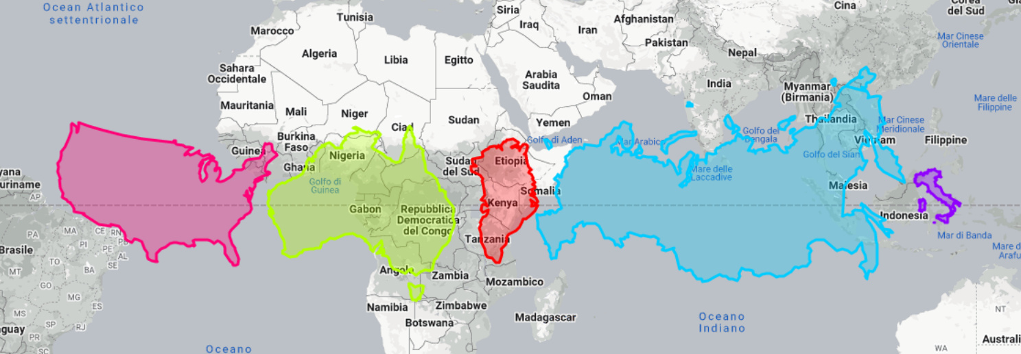 Confronto tra Stati Uniti, Australia, Groenlandia, Russia e Italia.