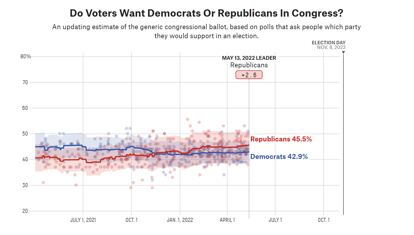 Attualmente, nella media dei sondaggi nazionali elaborata da FiveThirtyEight, i Repubblicani hanno il 45,5 per cento dei consensi, mentre i Democratici sono fermi al 42,9 per cento – con il Partito Repubblicano che è sopra i Dem da novembre 2021. Non tutti i sondaggi a livello nazionale vedono il GOP sopra i Dem, ma il sistema elettorale favorisce intrinsecamente il Partito Repubblicano: per esempio, nel 2020 il Partito Democratico ha avuto 3 punti di vantaggio su base nazionale, ma ha ottenuto solo 4 seggi in più di quelli necessari per la maggioranza alla Camera; nel 2018 ha invece vinto di 8,5 punti, ma ha ottenuto solo 17 seggi in più della soglia di maggioranza sempre della Camera.