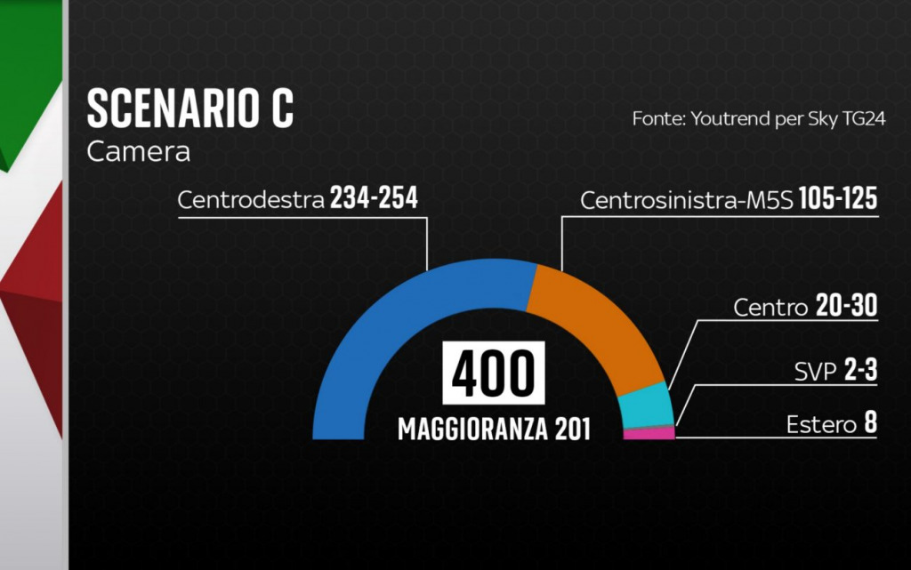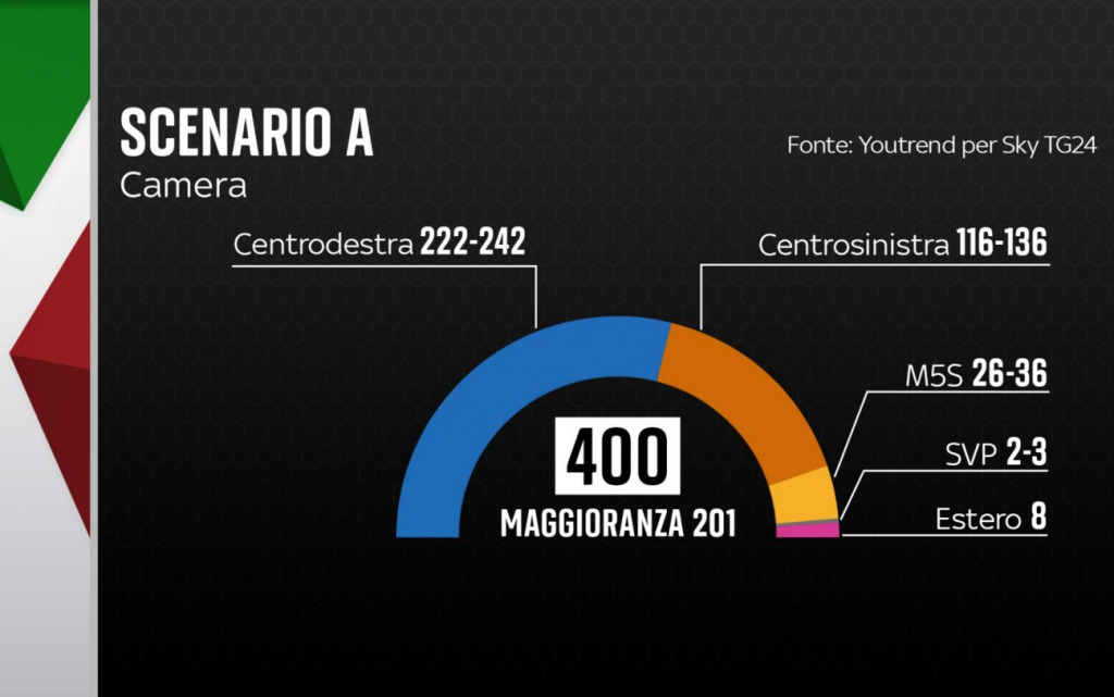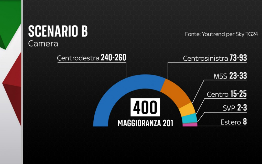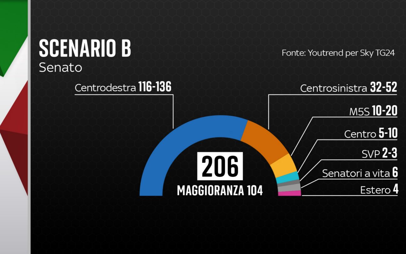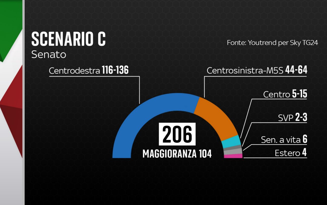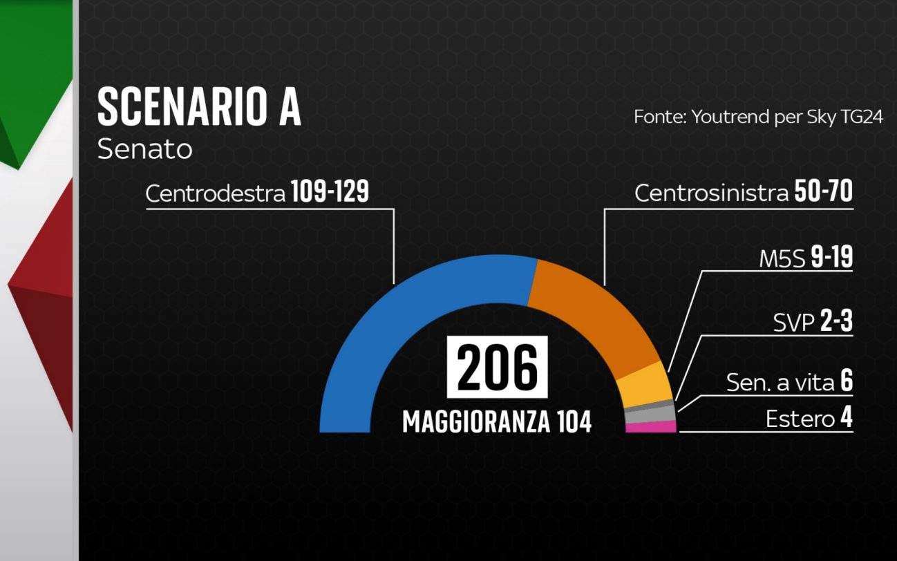 Qui la simulazione sul sito di Sky TG24. Questa simulazione è basata sulle percentuali dei partiti dell’ultmo sondaggio YouTrend per Sky TG24.