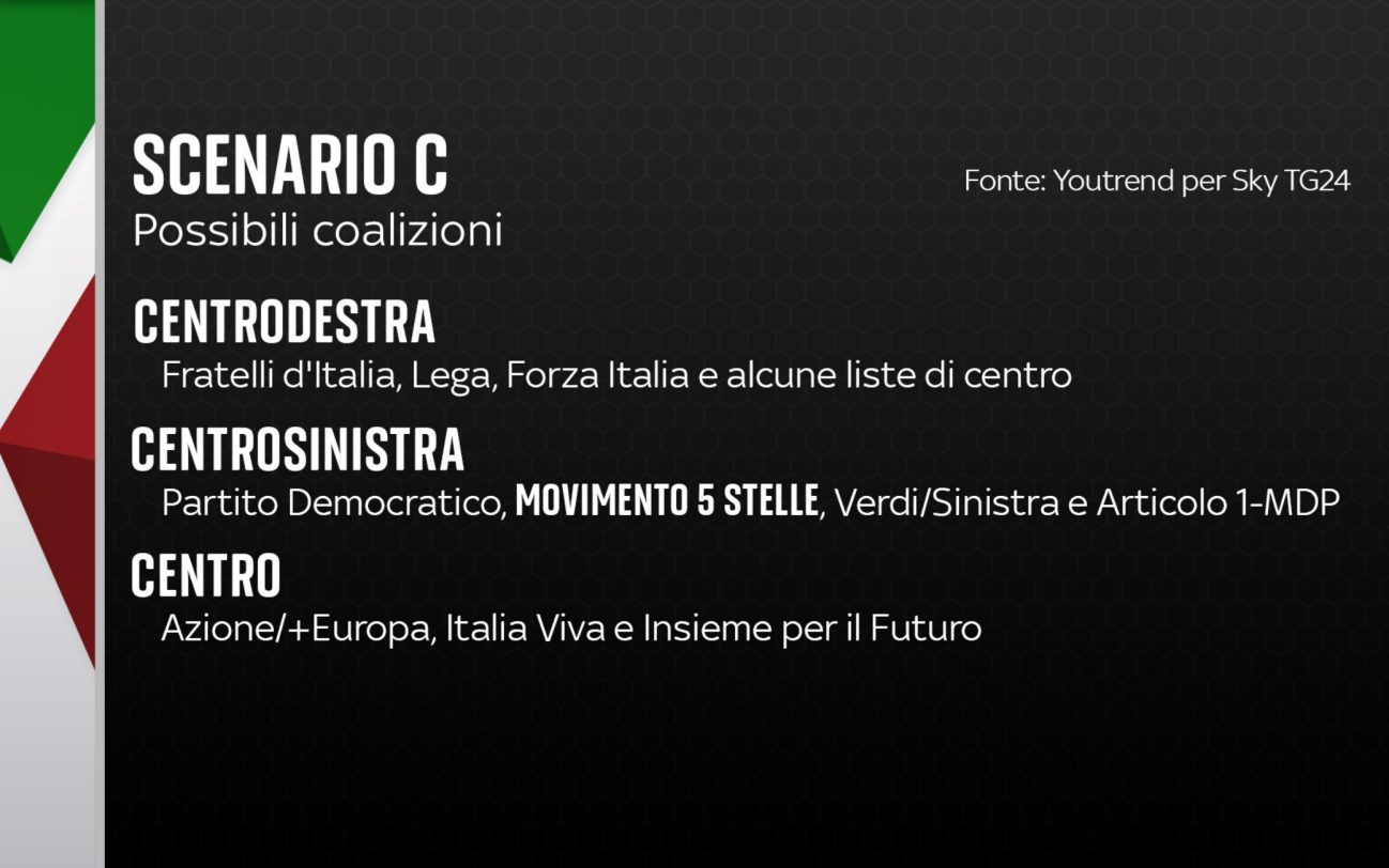 Il centrodestra avrebbe la maggioranza assoluta dei seggi anche nel caso in cui il PD e le forze di sinistra si alleino con M5S o centristi