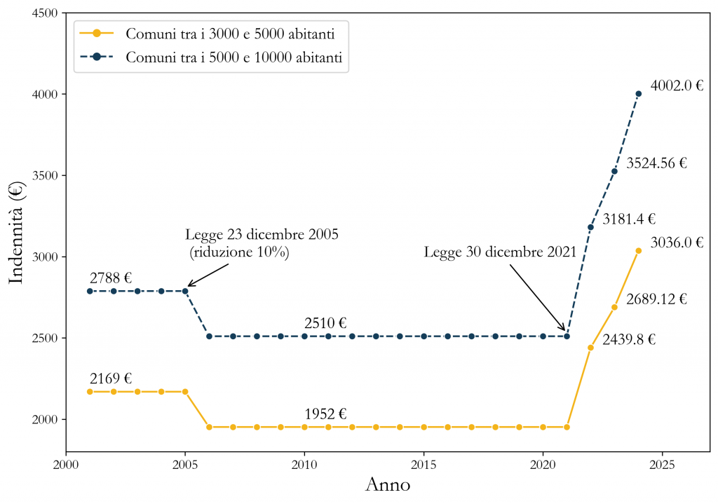 Da gennaio 2022, sindaci, assessori e consiglieri comunali appartenenti alle regioni a statuto ordinario si sono visti aumentare notevolmente le loro indennità (in media del 50%). Gli aumenti si differenziano in base a soglie di popolazione del comune e verranno adottati in modo progressivo dal 2022 al 2024.